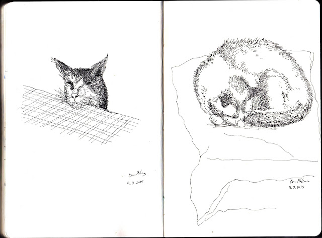 A tinta/gel em traços grossos leva algum tempo a secar, o que me impede de ter uma postura mais descontraída tocando com os dedos no papel, facilmente surgem borrões ao mínimo toque.